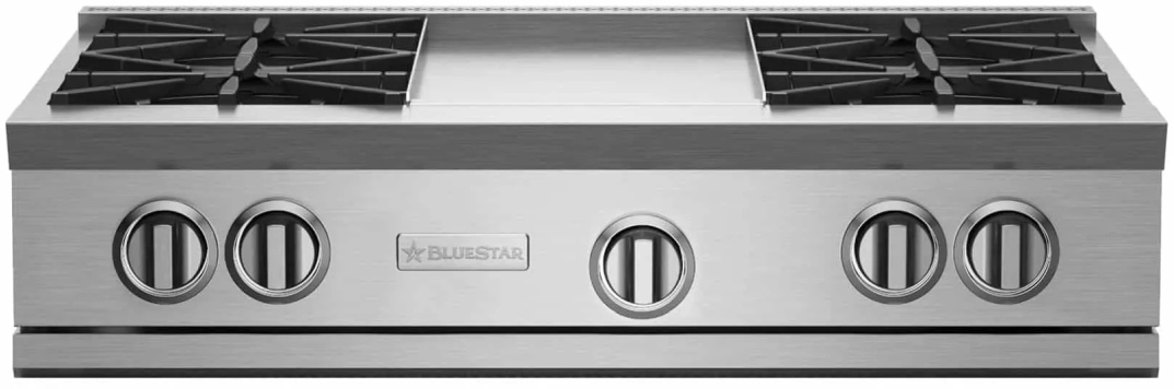 Fully Customizable: BlueStar® RNB rangetops can also be customized to suit your personal design and style. Add a touch of color with colored knobs on any RNB rangetop. Further customize with metal trim finishes and different backguard heights. The options are endless.