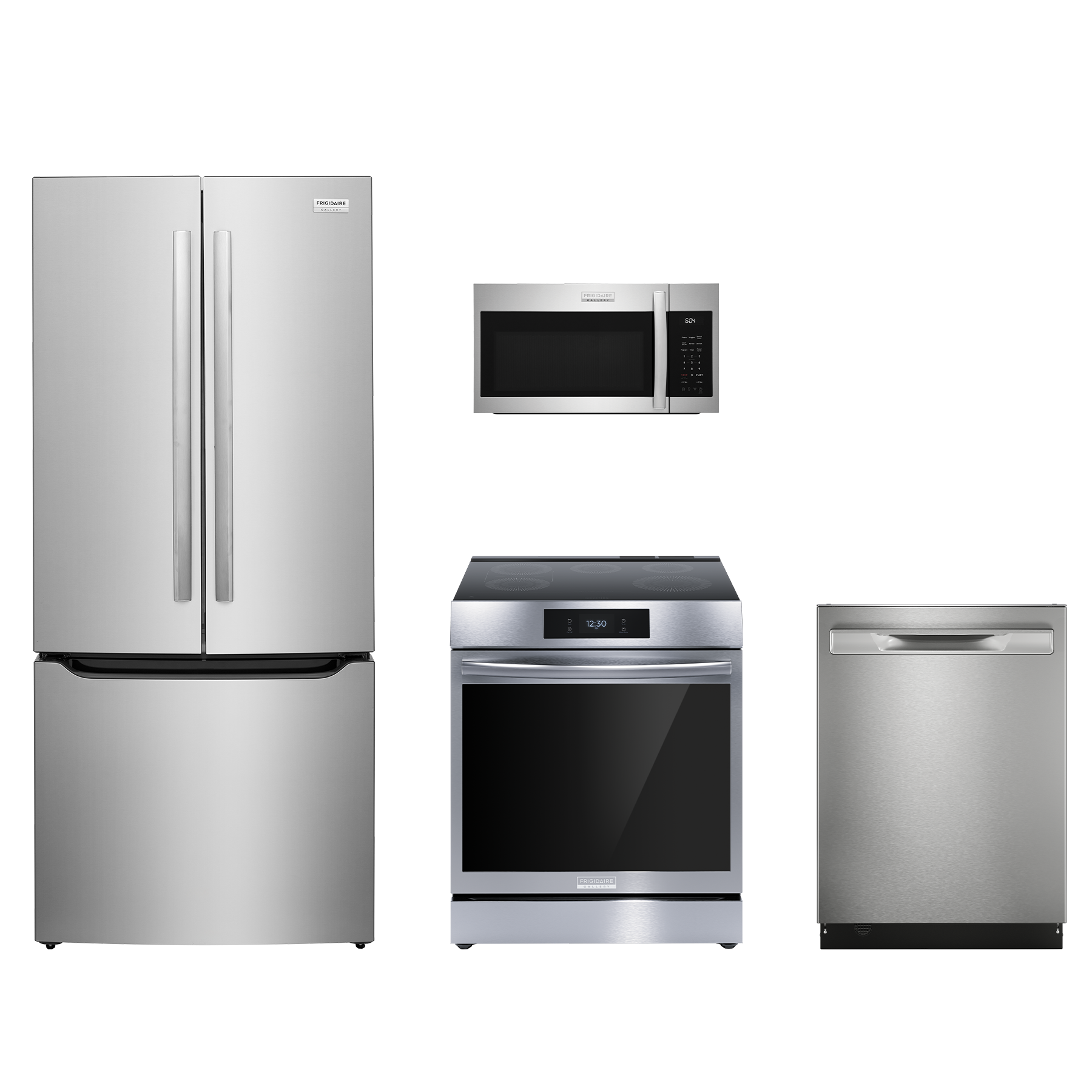 Frigidaire Gallery® 4 Piece Stainless Steel Kitchen Package with French door refrigerator, freestanding induction range, built in dishwasher and over the range microwave.Read More