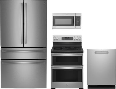 GE Profile™ 4 Piece Stainless Steel Kitchen Package with a French Door Refrigerator, Freestanding Electric Range, Over The Range Microwave, and a Built In Top Control DishwasherRead More