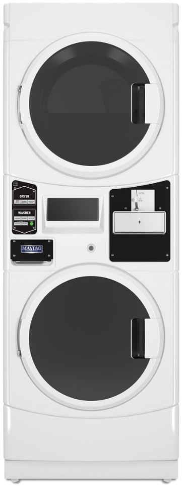 The stack washer/dryer is engineered to give laundry facilities the power, efficiency, and durability they need to operate, day after day – all within the floor space of a washer alone. Designed and tested to run 15,000 cycles, with high extraction speeds up to 1,000 RPMs – the washer’s DuraCore Drive System provides an exceptional wash experience and helps cut drying time. Intelligent controls with M-Series Technology allows owners to easily program individual wash cycles for profitability and user experience. Pricing can be uniquely customized by independent cycles or time-of-day – creating more opportunity to generate revenue. Plus, flexible cycle options provide users with the ability to select cycles based on their specific wash needs. Built with TurboVent® Technology that optimizes drying performance, the super-capacity dryer helps laundry facilities cut utility costs and run with efficiency. Our stack washer/dryer is coin drop-ready, ENERGY STAR® qualified, and backed by Maytag brand's comprehensive 7/5-year warranty.Read More
