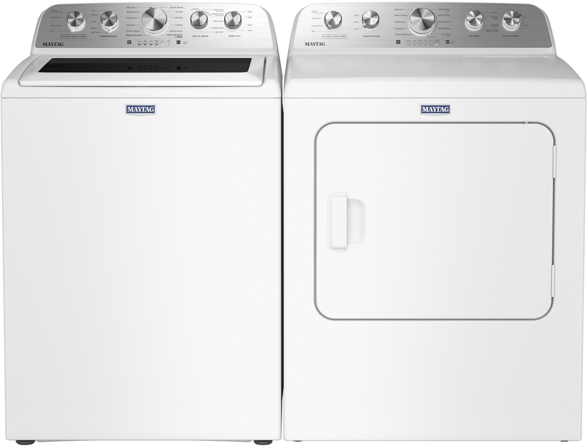 Maytag® White Laundry Pair with 4.7 Cu. Ft. top load washer and 7 Cu. Ft. electric dryer with pet pro option.Read More