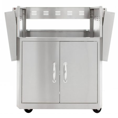 This Blaze stainless steel grill cart is specifically designed to house the Blaze Professional 2 burner gas grill. The two stainless steel side shelves keep your BBQ tools at hand and provide a convenient work area while you cook. The Blaze grill cart also features two front doors with a rounded handle to access the cabinet below the grill where you can store your propane tank.Read More