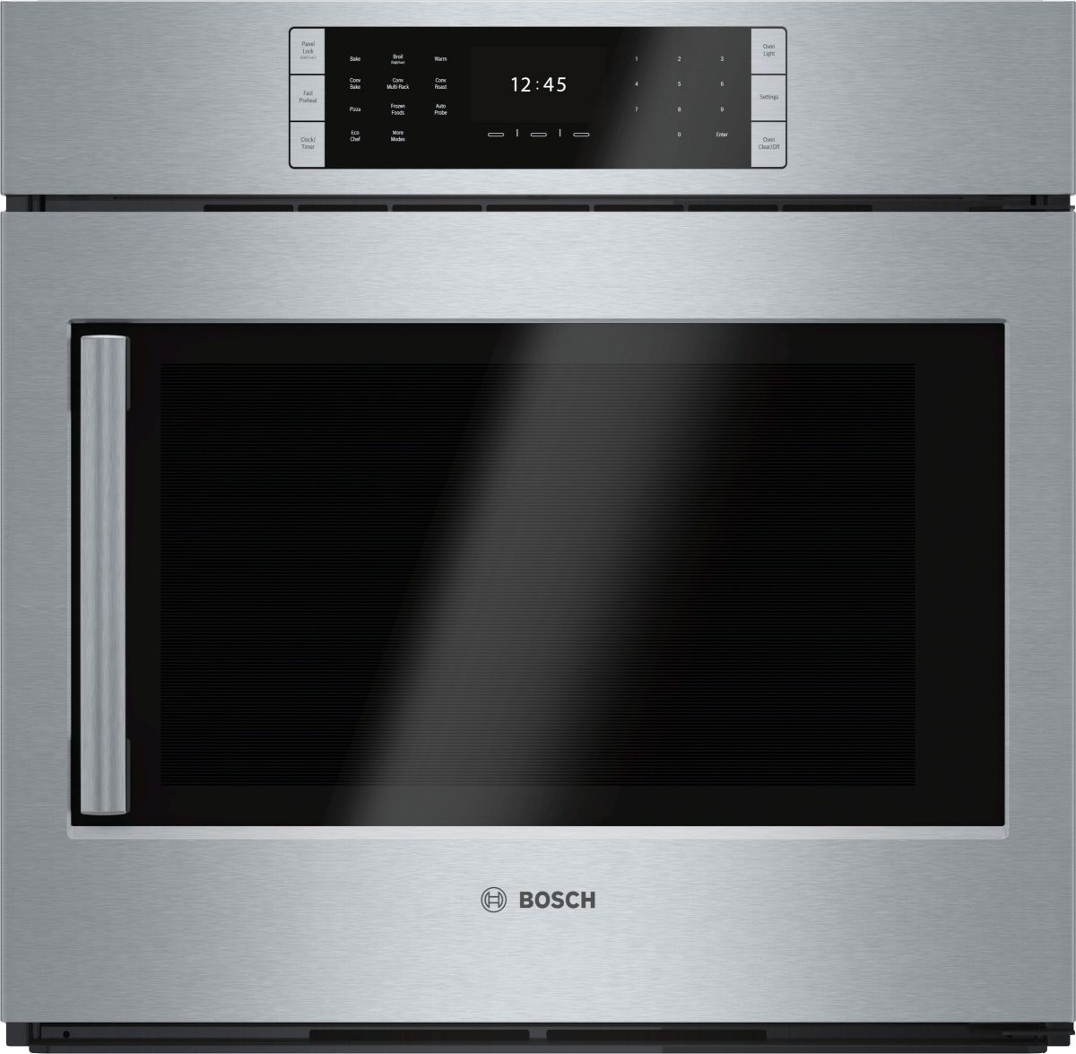 The Bosch Wall Oven Features a SideOpening Door for Easier Cavity Access and a High-Resolution TFT User Interface. Convection Pro has a third heating element and a fan evenly circulates air around the cavity so you get consistently even golden results.Read More