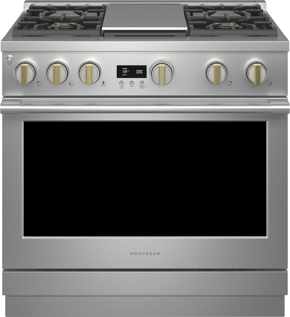 Open Box **Scratch and Dent** Monogram® Statement Collection 36" Stainless Steel Pro Style Natural Gas Range