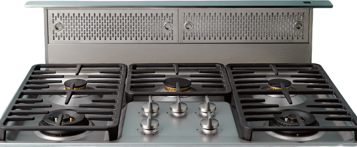 Ideal for small kitchens or for island settings where ceilings are too high for ducting, Sorrento rises to the occasion. The brushed stainless steel filter unit houses quiet, efficient centrifugal blowers. An automatic heat sensor adjusts blowers in high-heat conditions. The press of a button lets you conveniently raise and lower this hood.Read More