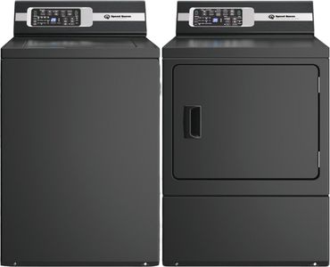 Speed Queen® Matte Black Laundry Pair with a 3.2 Cu. Ft. capacity top load washer and a 7 Cu. Ft. capacity front load electric dryer.Read More