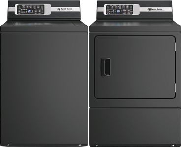 Speed Queen® Matte Black Laundry Pair with a 3.2 Cu. Ft. capacity top load washer and a 7 Cu. Ft. capacity front load gas dryer.Read More