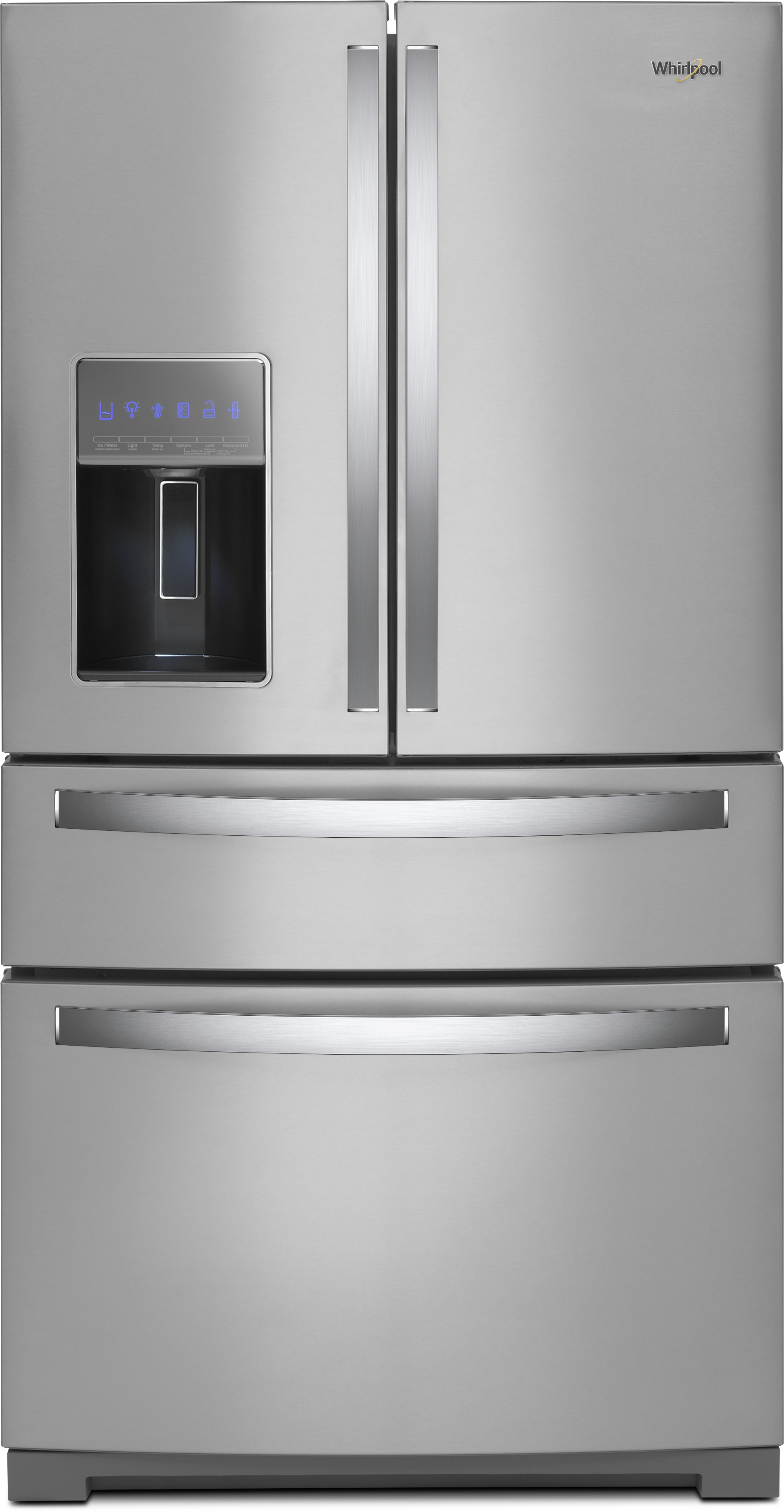 This spacious 4-door refrigerator is guaranteed to be the hallmark of your kitchen. With a triple crisper, a small items bin, a refrigerated exterior drawer, triple-tier freezer, and fully customizable shelving lit by panoramic LED lighting, every one of your family’s foods and beverages has its place. The advanced dual-cooling technology automatically adjusts internal humidity for food that stays as fresh and delicious as when you picked or purchased it. Complemented by a stylish exterior ice and water dispenser with EveryDrop™ filtration, this Whirlpool® fridge was designed for you and your busy family.